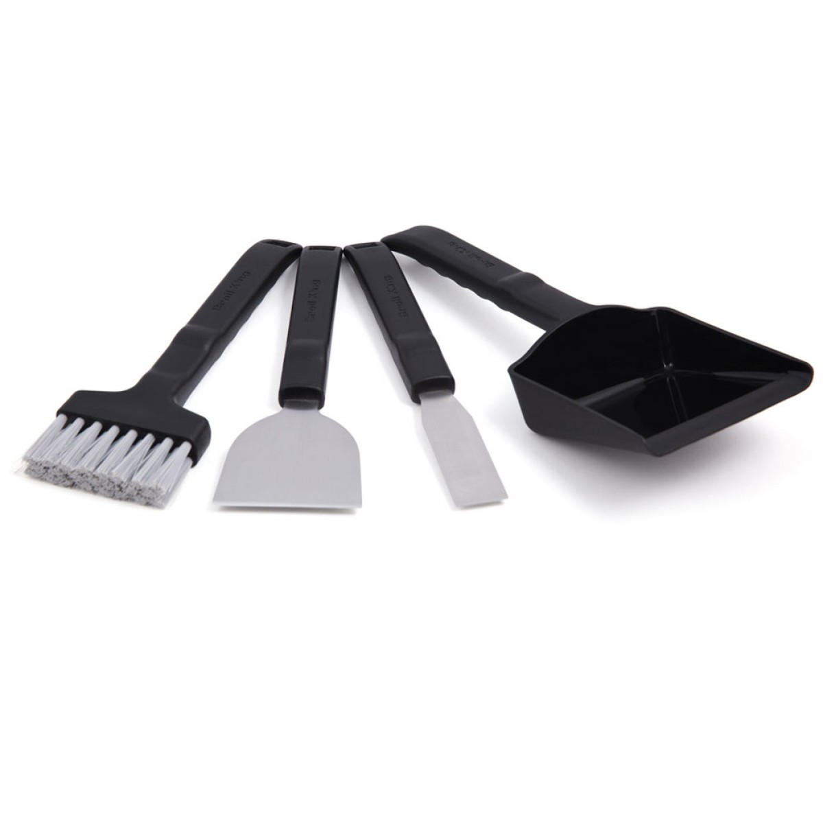 В этом комплекте есть все необходимое, чтобы ваш пеллетный гриль был чистым и работал как новый. Используйте щетку с мягким ворсом и совок, чтобы собрать пепел или обугленные частицы внутри пеллетного гриля. Широкий скребок легко удаляет пригоревшие остатки на больших нагревательных пластинах, а узкий скребок очищает остатки пищи на узких участках. Все инструменты имеют пластмассовые ручки. Этот комплект для чистки гриля также идеально подходит для вашего газового гриля Broil King!Основные характеристики