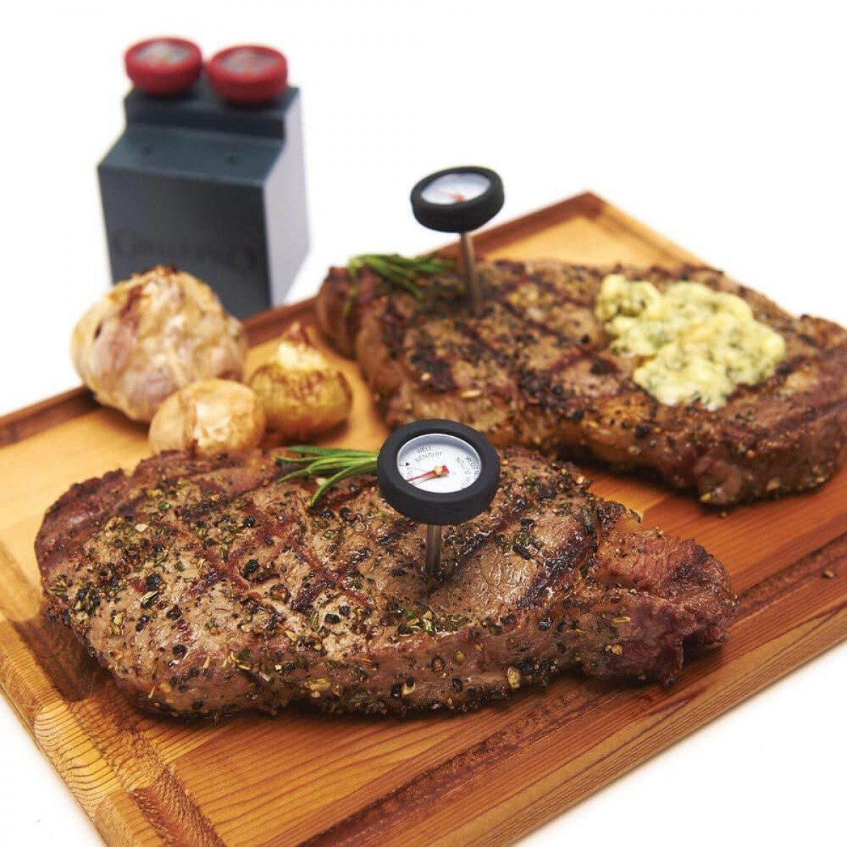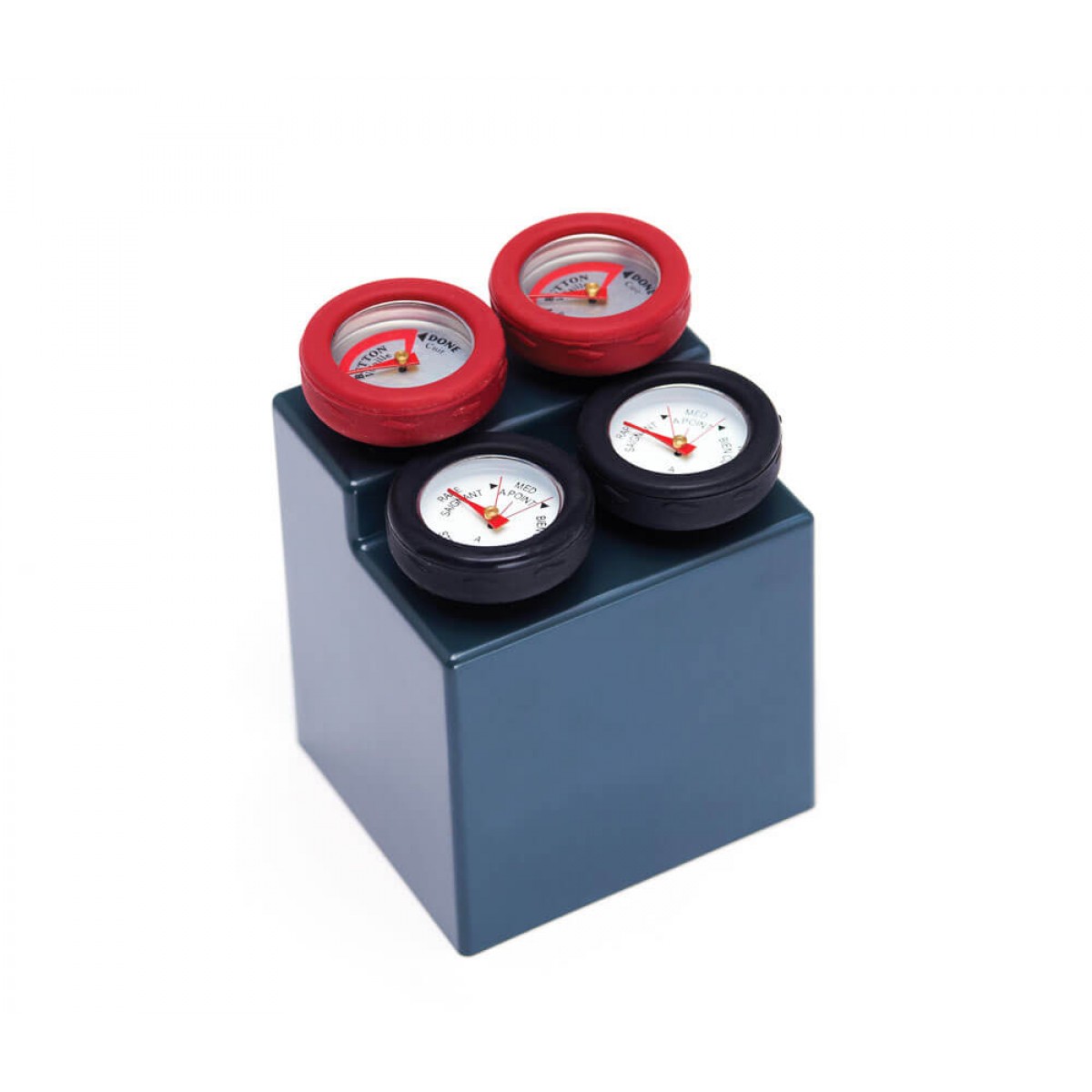 Набор из четырех мини-термометров с силиконовым ободком для их легкого доставания из готовой пищи и отдельных вырезок мяса. 2 красных термометра – для птицы, 2 черных – для стейков. В комплекте идет удобная подставка Broil King для хранения термометров в одном месте.Основные характеристики