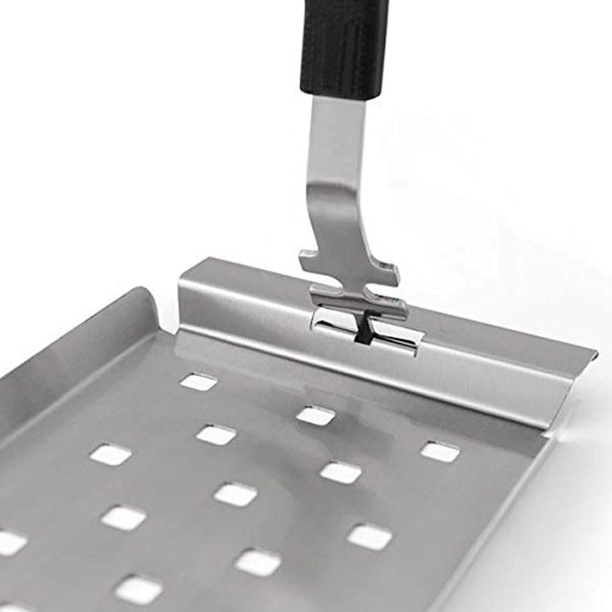 Новая улучшенная система для подъема решеток позволит Вам поднимать чугунные и стальные решетки грилей Broil King. Одна конфигурация зубьев для чугунных решеток, вторая – для решеток из нержавеющей стали. Лопатка сделана из нержавеющей стали и имеет резиновую ручку.Основные характеристики