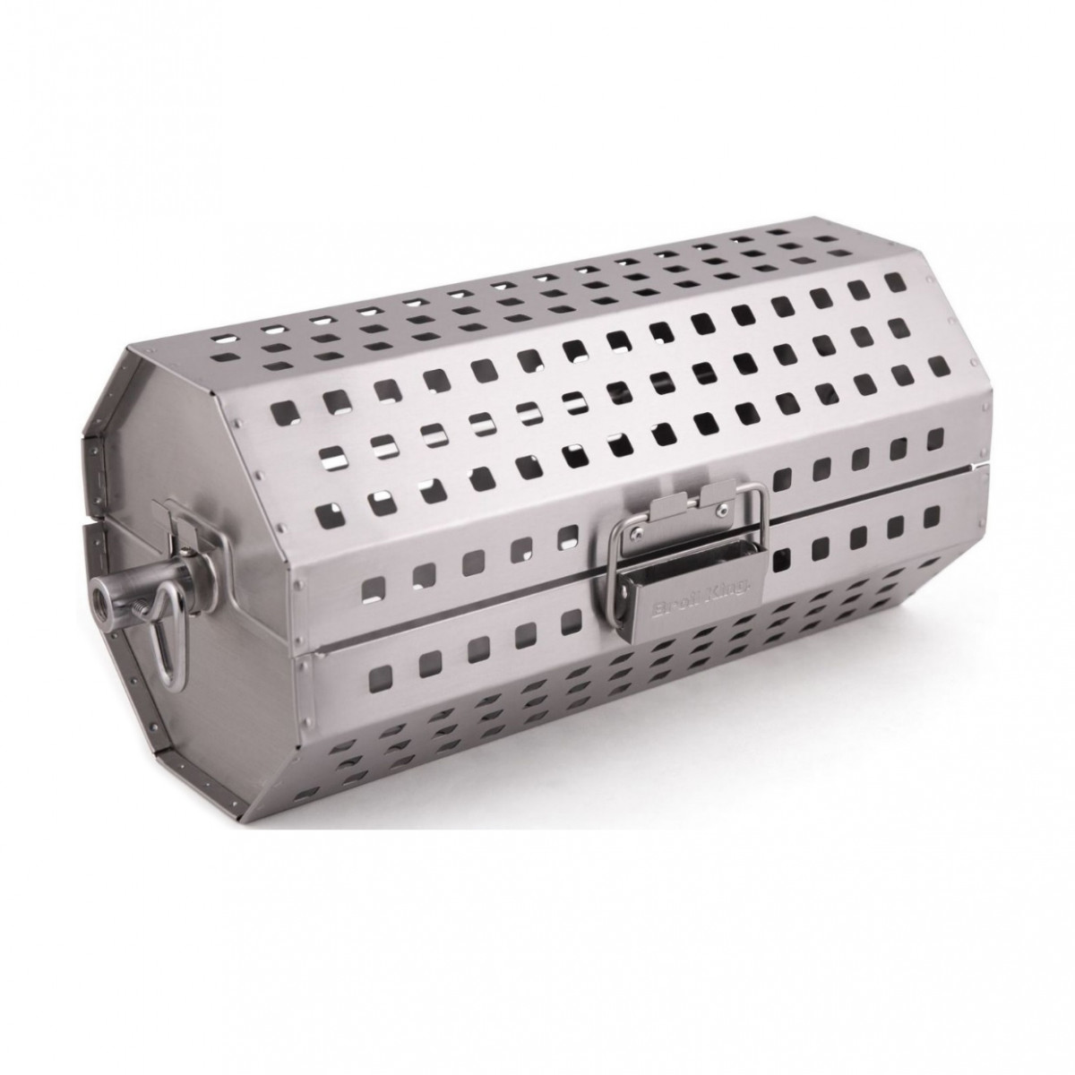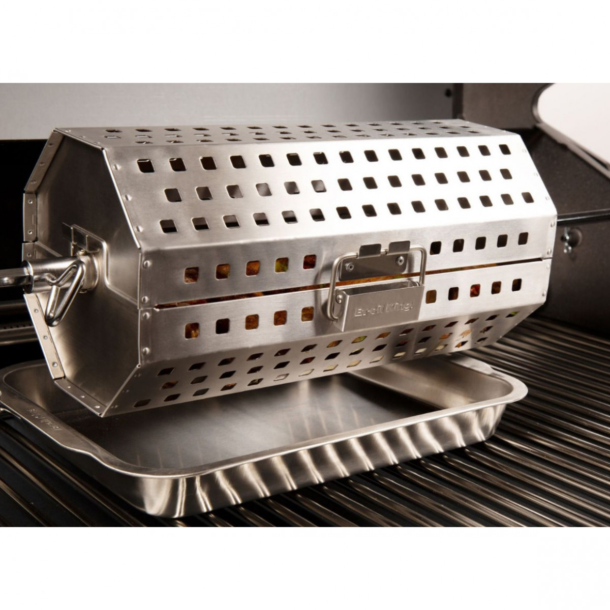 Перфорированная корзина из нержавеющей стали устанавливается вертелом в гриле. Используйте корзину д..