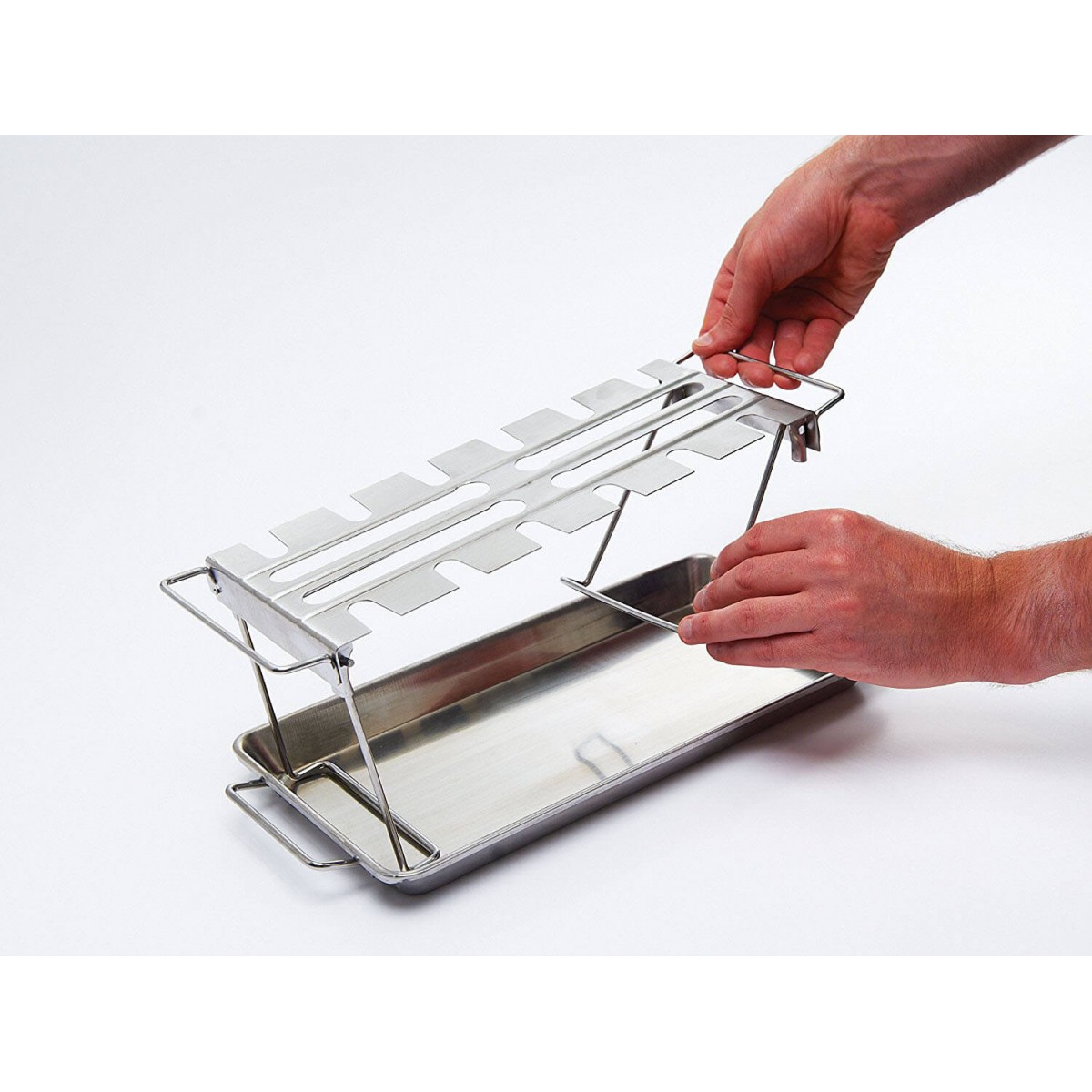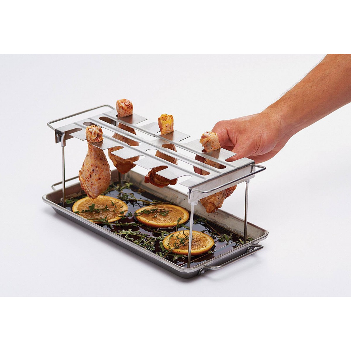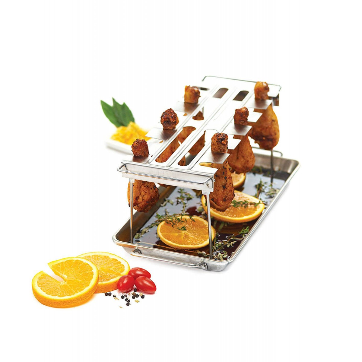 Эта стойка из нержавеющей стали позволит вам готовить на гриле куриные крылышки, бедра и голени. Можно мыть в посудомойке. Удобно складываеться для хранения.Основные характеристики