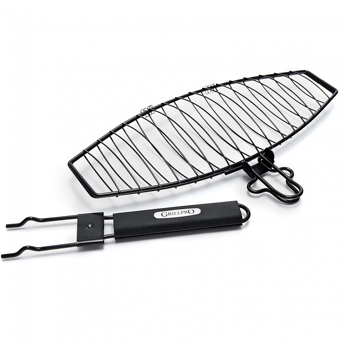 Специальная сетка для запекания целой рыбы на гриле или мангале. Выполнена из стали с прочным антипригарным керамическим покрытием. Съёмная ручка из термостойкого бакелита позволяет легко и безопасно переворачивать или вынимать сетку из гриля.Основные характеристики