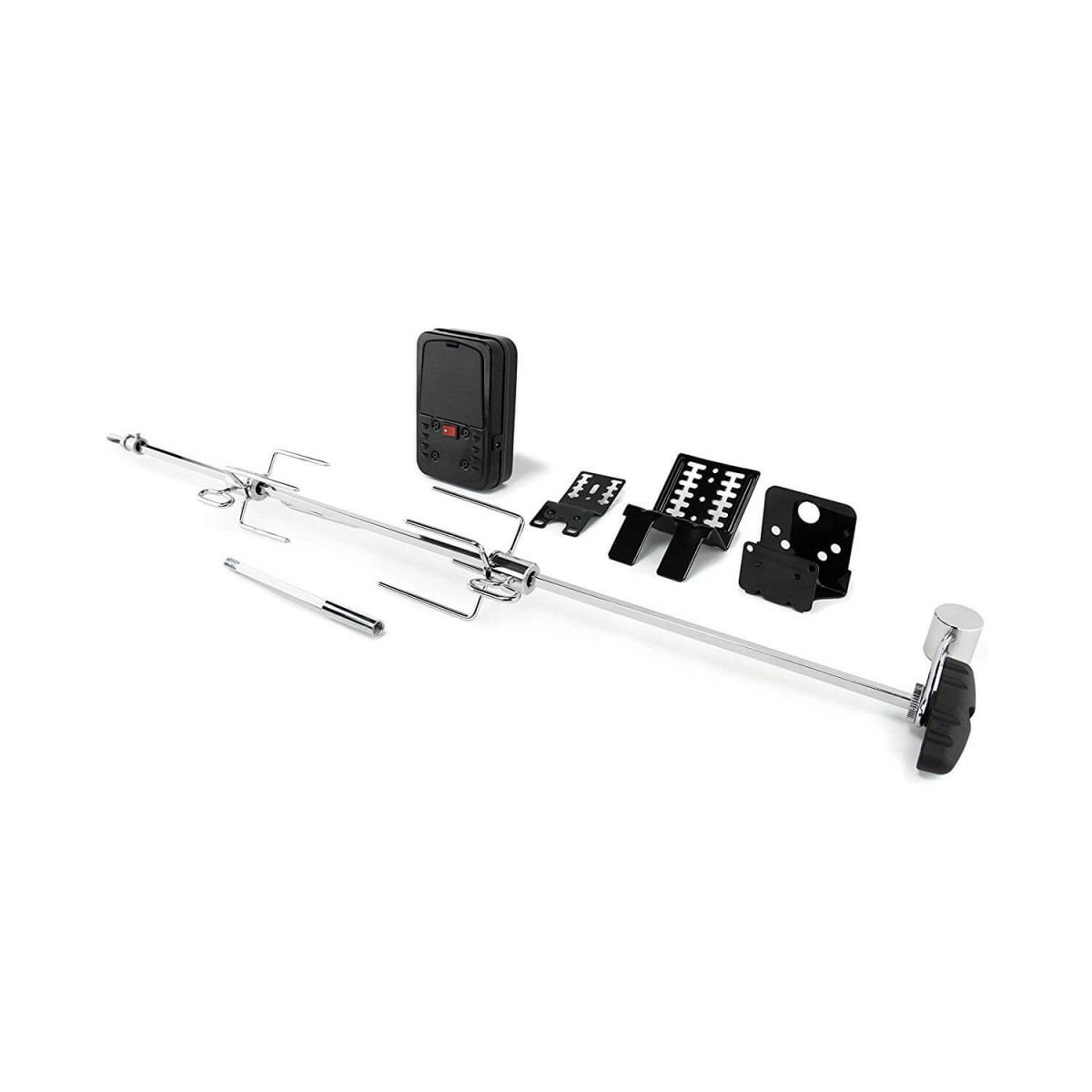 Универсальный набор включает в себя мотор на батарейках, прочные вилки, противовес, сам вертел и универсальные крепежи для грилей Broil King®, Broil Mate™, Sterling® и GrillPro®. Длину вертела 85,1 см при необходимости можно увеличить на 15.3 см с помощью специальной насадки.Основные характеристики