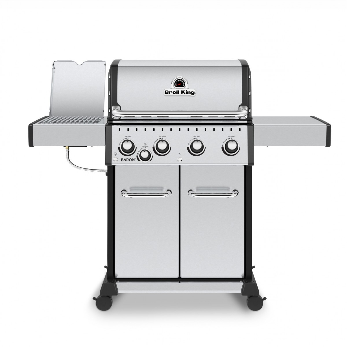 Broil King Baron S490 — надежный газовый гриль, производства Канады на 4 горелки из нержавеющей стали. Привлекательный дизайн, складные полки, двухсторонние чугунные решетки задняя горелка и электромотор вертела делают гриль универсальным. Большая решетка 65×44 см 4 мощных горелки Dual-Tube позволят готовить для большой компании и сделают гриль Broil King® Baron™ 490 приятным дополнением вашего сада.ОСНОВНЫЕ ПРЕИМУЩЕСТВА МОДЕЛИ BROIL KING BARON S490: