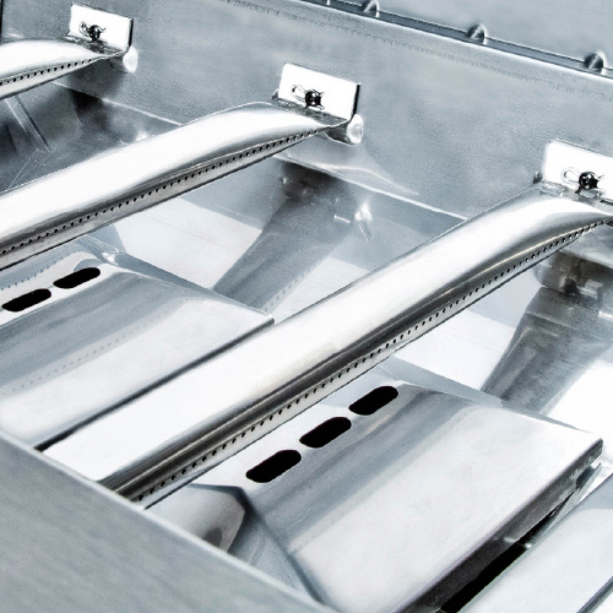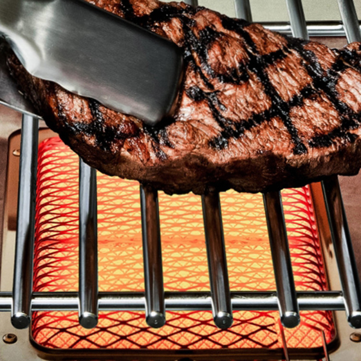 - 6 двусторонних решеток Flaw - R - Cast™ из чугуна, которые эффективно накапливают и выделяют тепло.