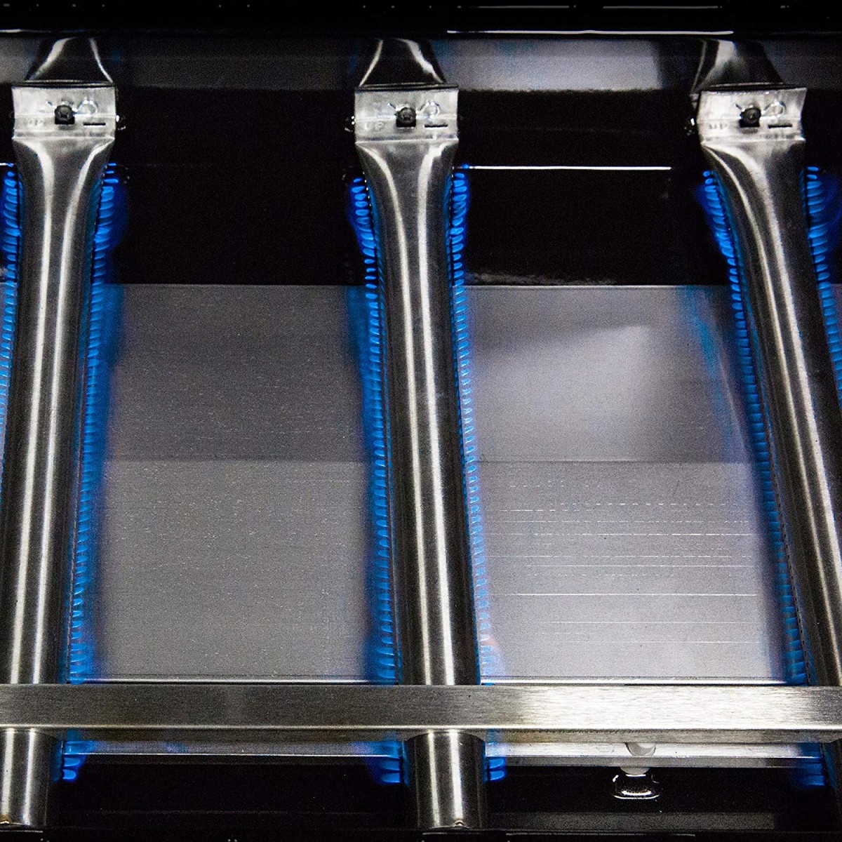 - В гриле установлены три основных мощных горелки с горизонтальными соплами по обе стороны.